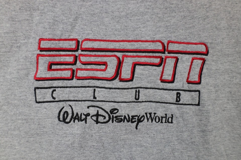 Vtg 90s Walt Disney World Mens 2XL Spell Out ESPN Club Short Sleeve T-Shirt USA