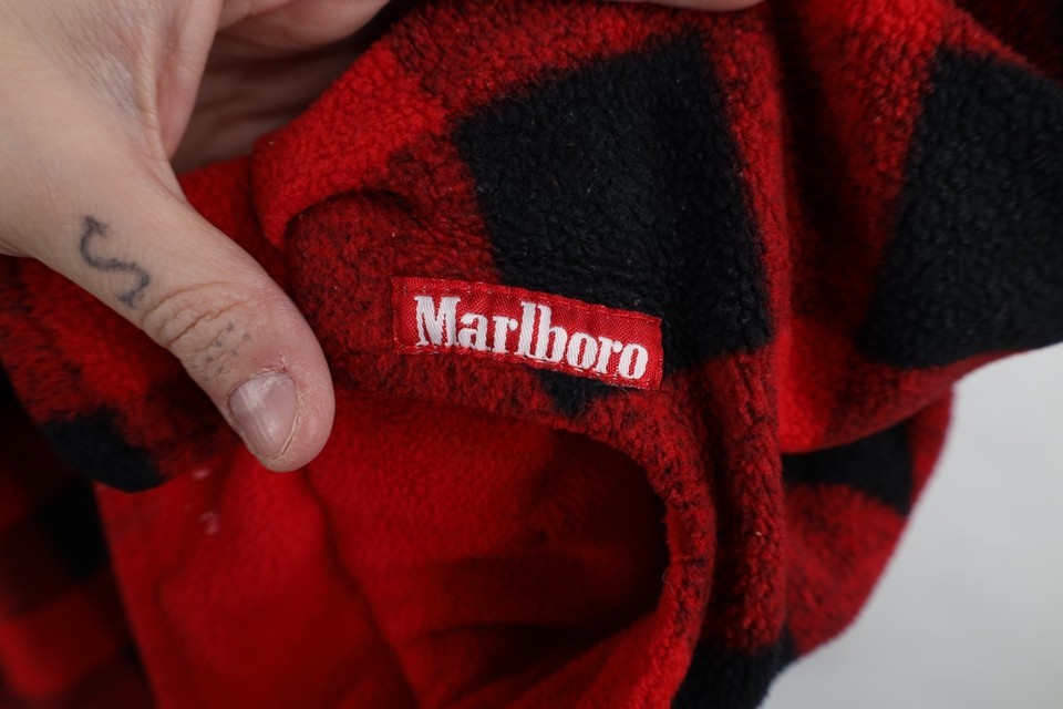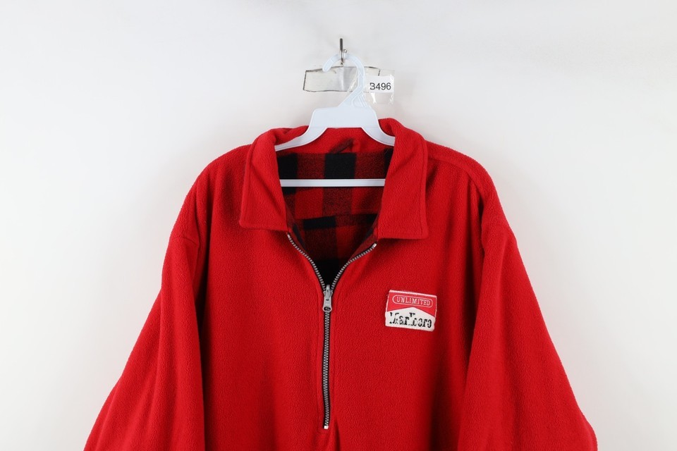 Vintage 90s Marlboro Mens XL Distressed Spell Out Reversible Fleece Sweater Red