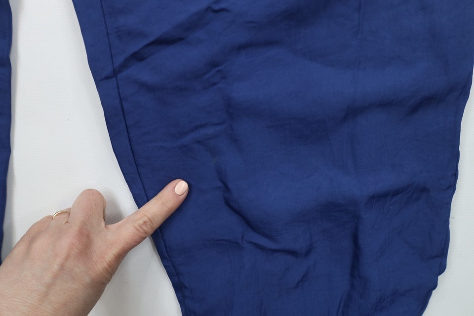 Blemishes throughout. Cuffs discolored. Inner lining pilled. Loose threads tag. Color faded