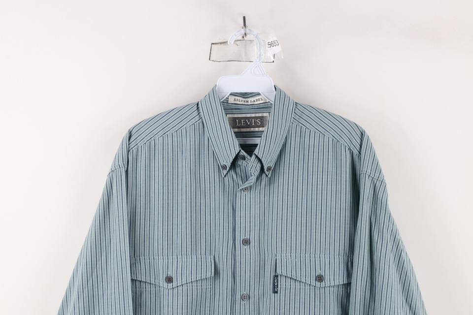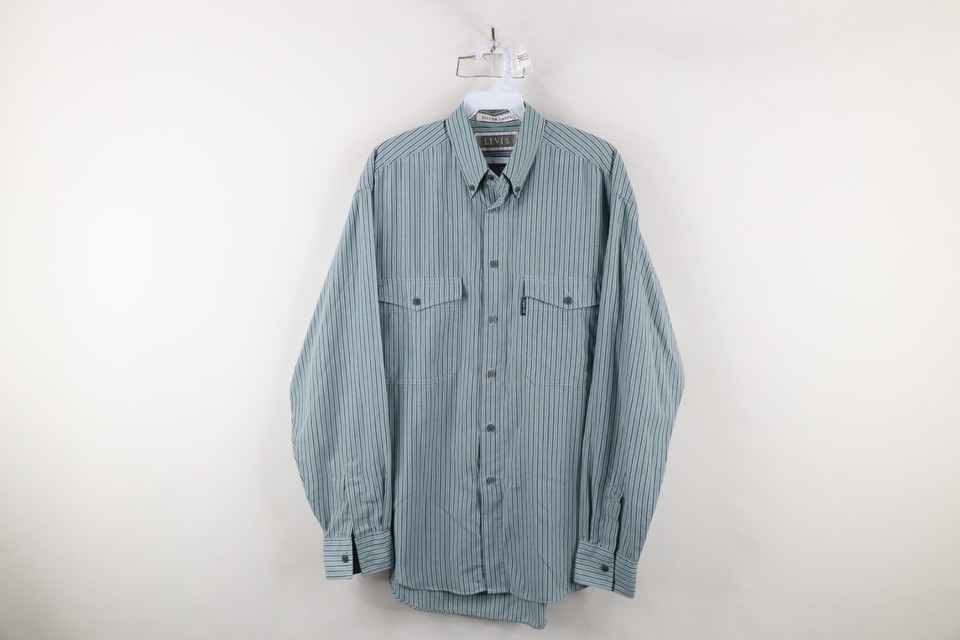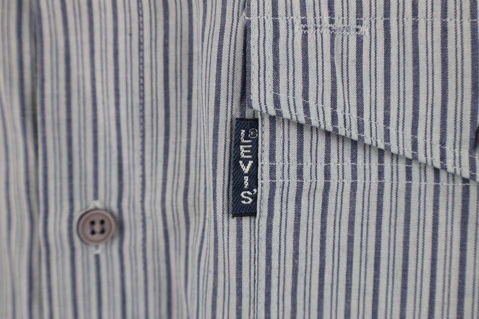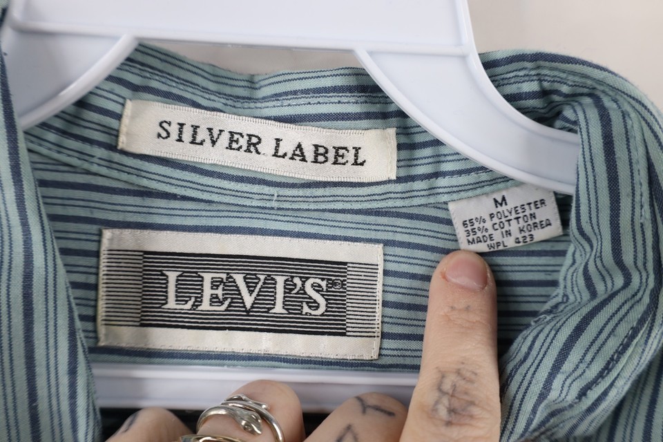 Vintage 80s Levis Big E Mens Medium Silver Tab Striped Baggy Button Down Shirt