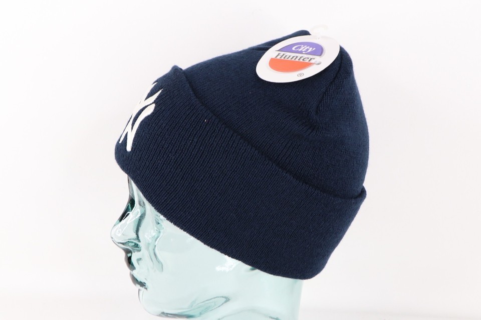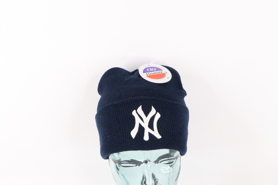 NOS Vintage Hip Hop New York Yankees Baseball Knit Winter Beanie Hat Cap Blue