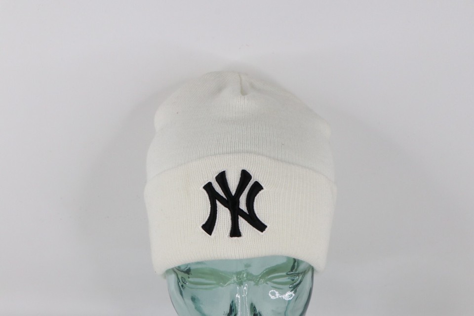 NOS Vintage Hip Hop New York Yankees Baseball Knit Winter Beanie Hat Cap White