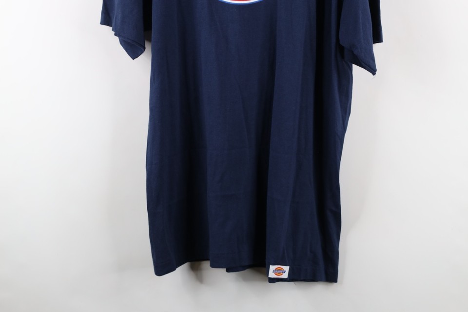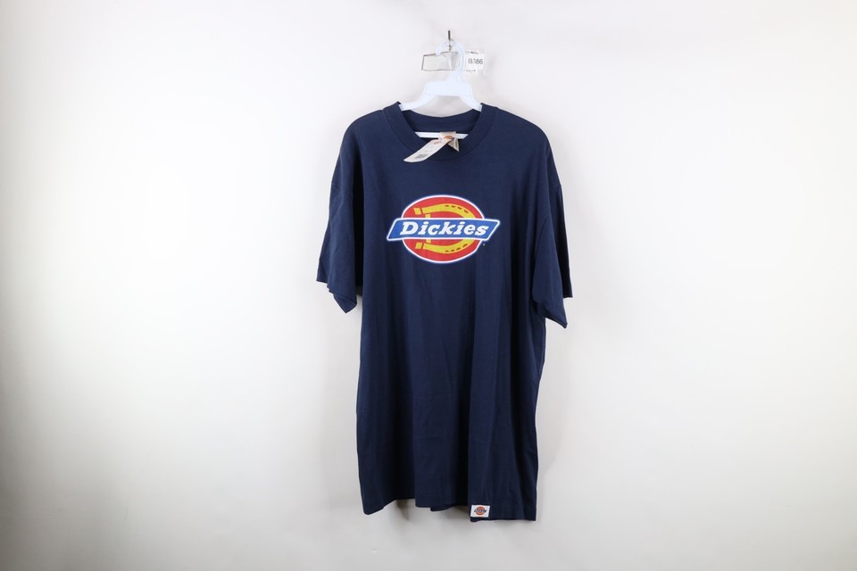 Deadstock Vintage 90s Dickies Mens XL Spell Out Big Logo T-Shirt Blue Cotton USA