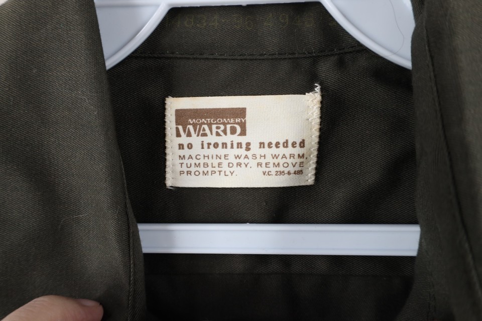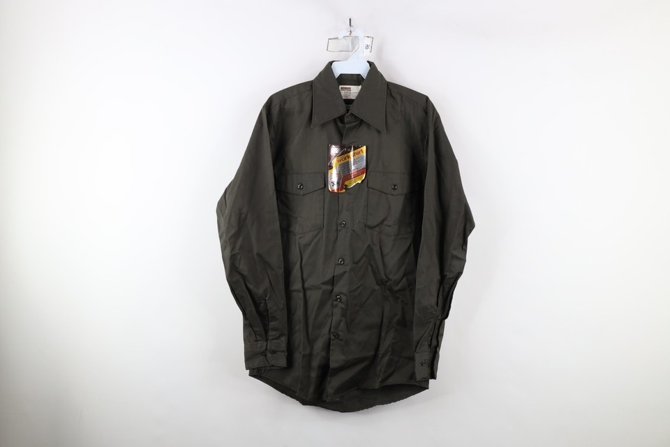 Deadstock Vtg 60s Mens Small Mechanic Workwear Collared Button Shirt Green USA