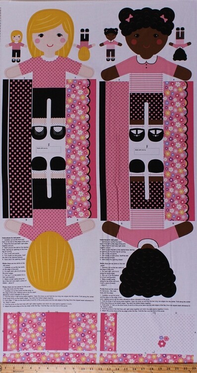 23.5" X 44" Panel Dolls Stuffed Toys Dolly Girls Pink Fabric Panel D472.28