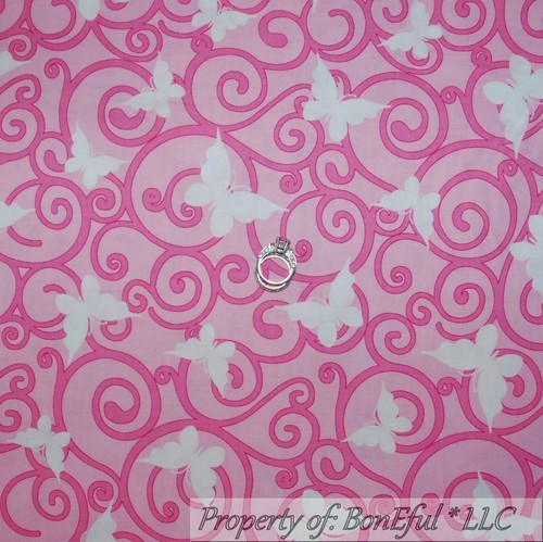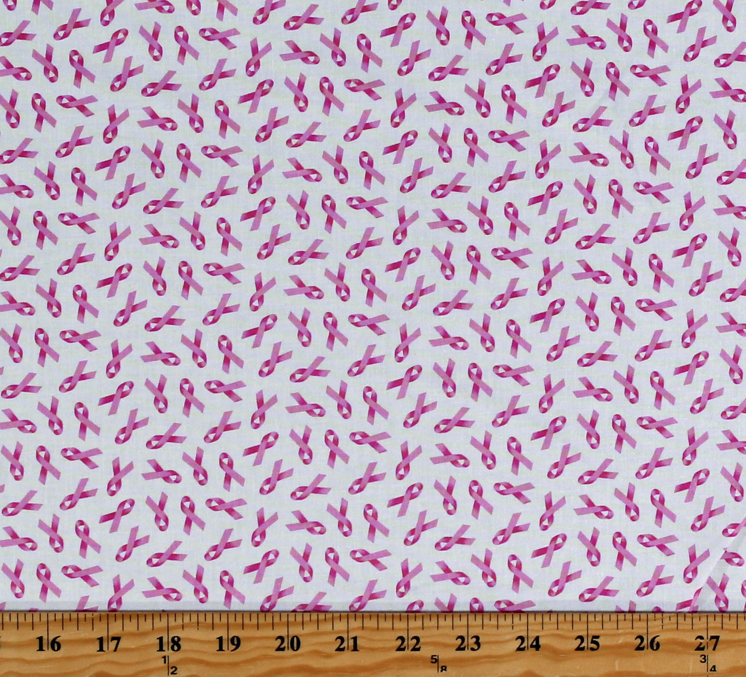 Cotton Pink Ribbons Breast Cancer Awareness White Fabric Print by Yard D777.24