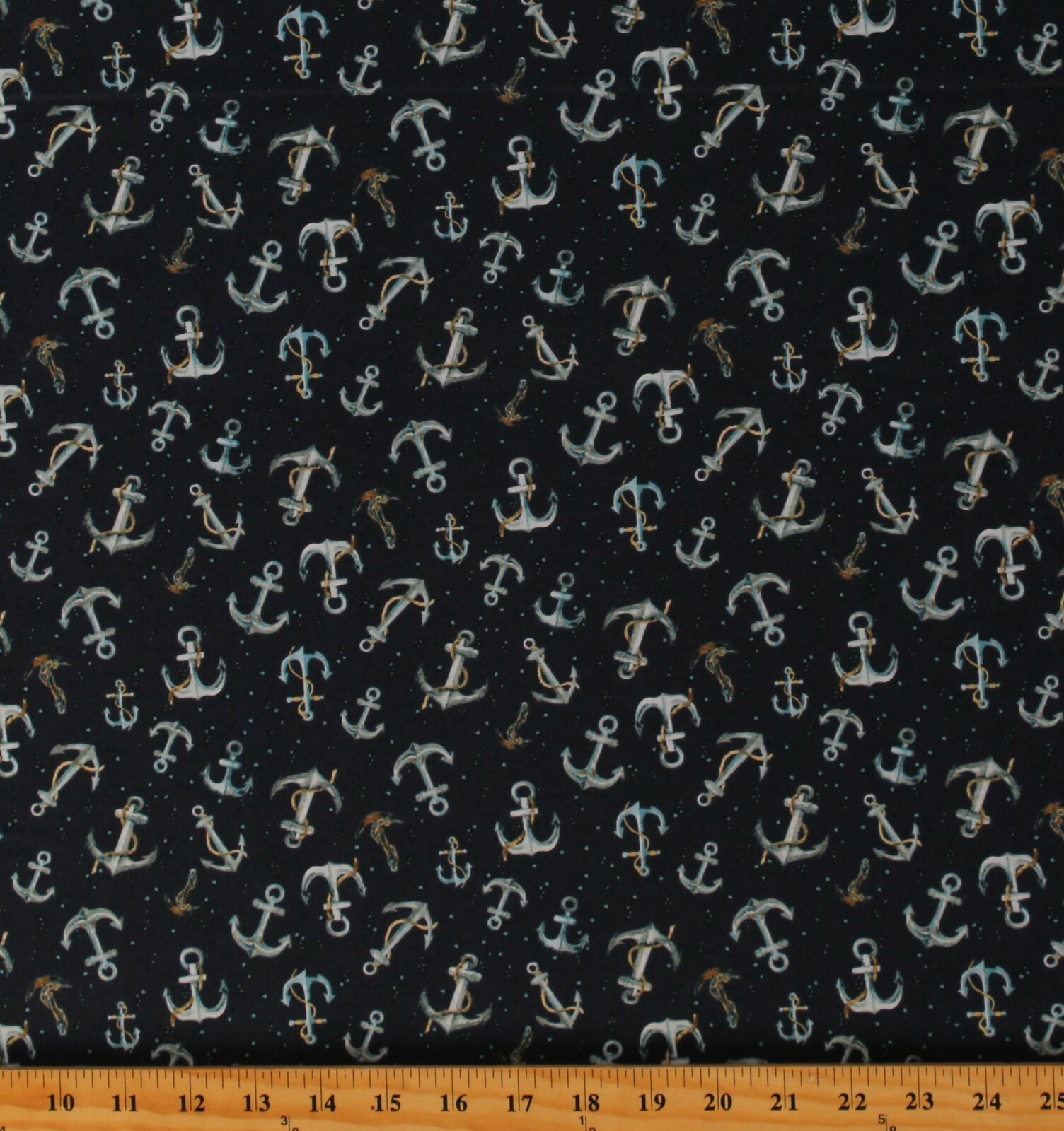 Cotton Anchors Water Ocean Boats Nautical Sea Ships Fabric Print by Yard D575.88