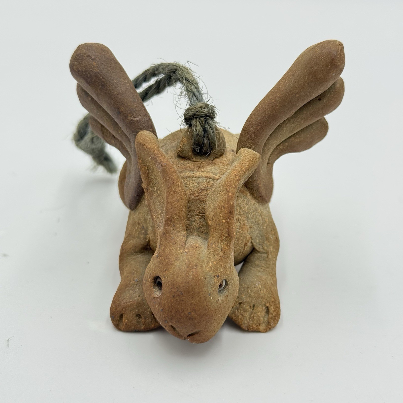 Signed Studio Art Pottery Bunny Angel Wings Ornament