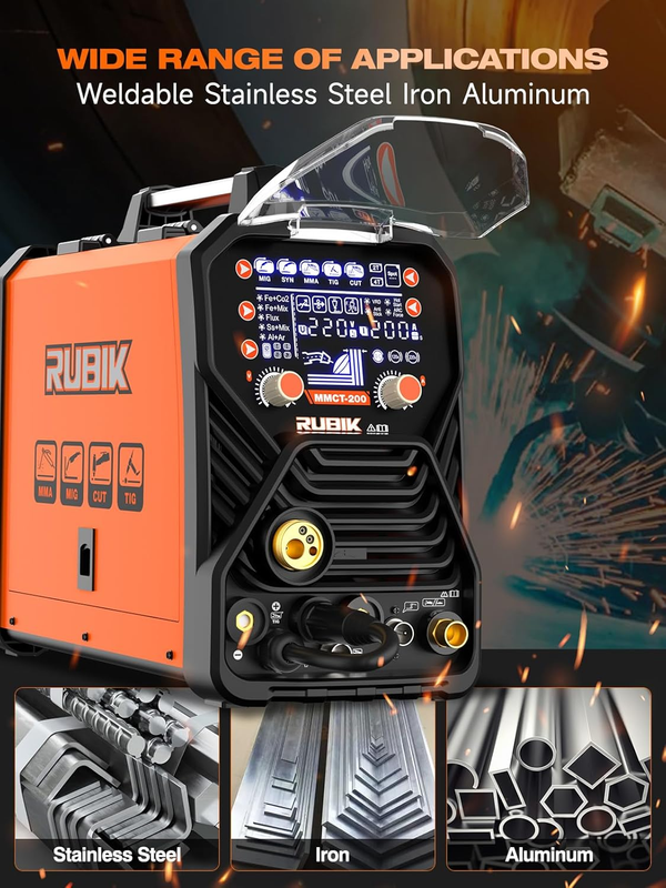 Multi-functional welder , all-round king of welding and cutting! Whether you are a professional welder or a DIY enthusiast, RUBIK welder and cutter machine can meet all your needs! Support HF TIG, MMA STICK , GAS MIG, FLUX CORE MIG, PLASMA CUTTING ,SPOT WELDING and SYN, easy to deal with aluminum, iron, stainless steel and other materials. Welding, cutting, all in one machine! No more need for multiple machines, saving space and budget. From parts repair to large-scale processing, weld when you want, cut when you want