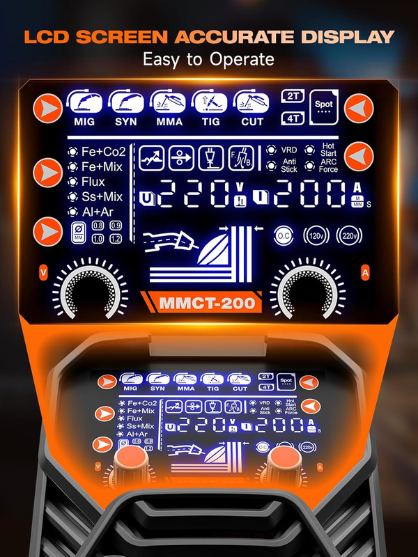 LCD large screen, precise operation, real-time monitoring! This multi process welder is equipped with a large LCD display, making every adjustment intuitive and easy to understand. Whether it's adjusting the current, voltage, or selecting different welding modes, all the settings are clearly displayed and understandable at a glance. Real-time data monitoring, allowing you to control the welding status at any time, precise operation, doubling the efficiency! Welding is as easy as playing a game, anyone can become a master welder