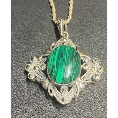 925 Sterling Silver Malachite And Marcasites and 49 similar items