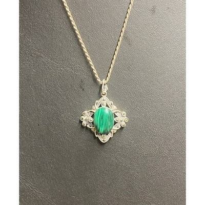 925 STERLING SILVER MALACHITE AND MARCASITES PENDANT NECKLACE SKY