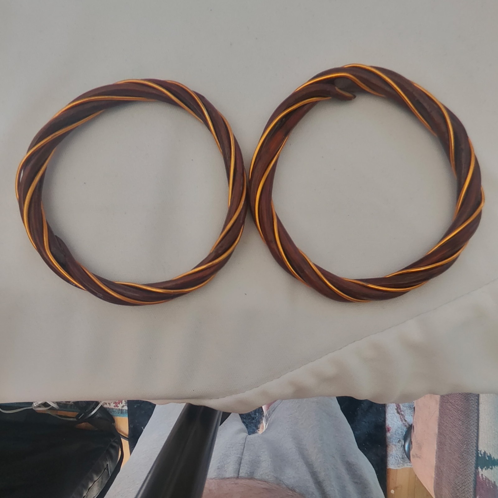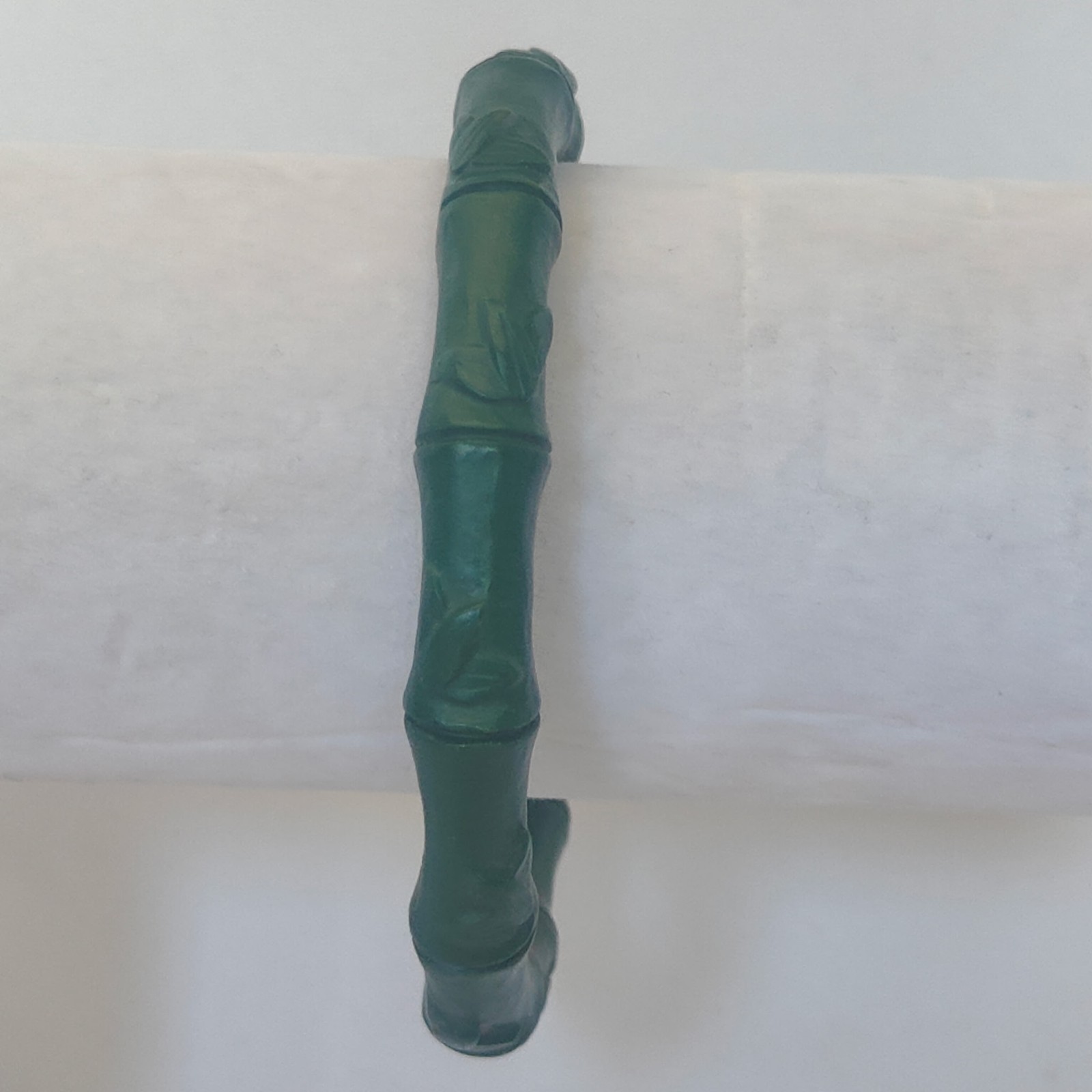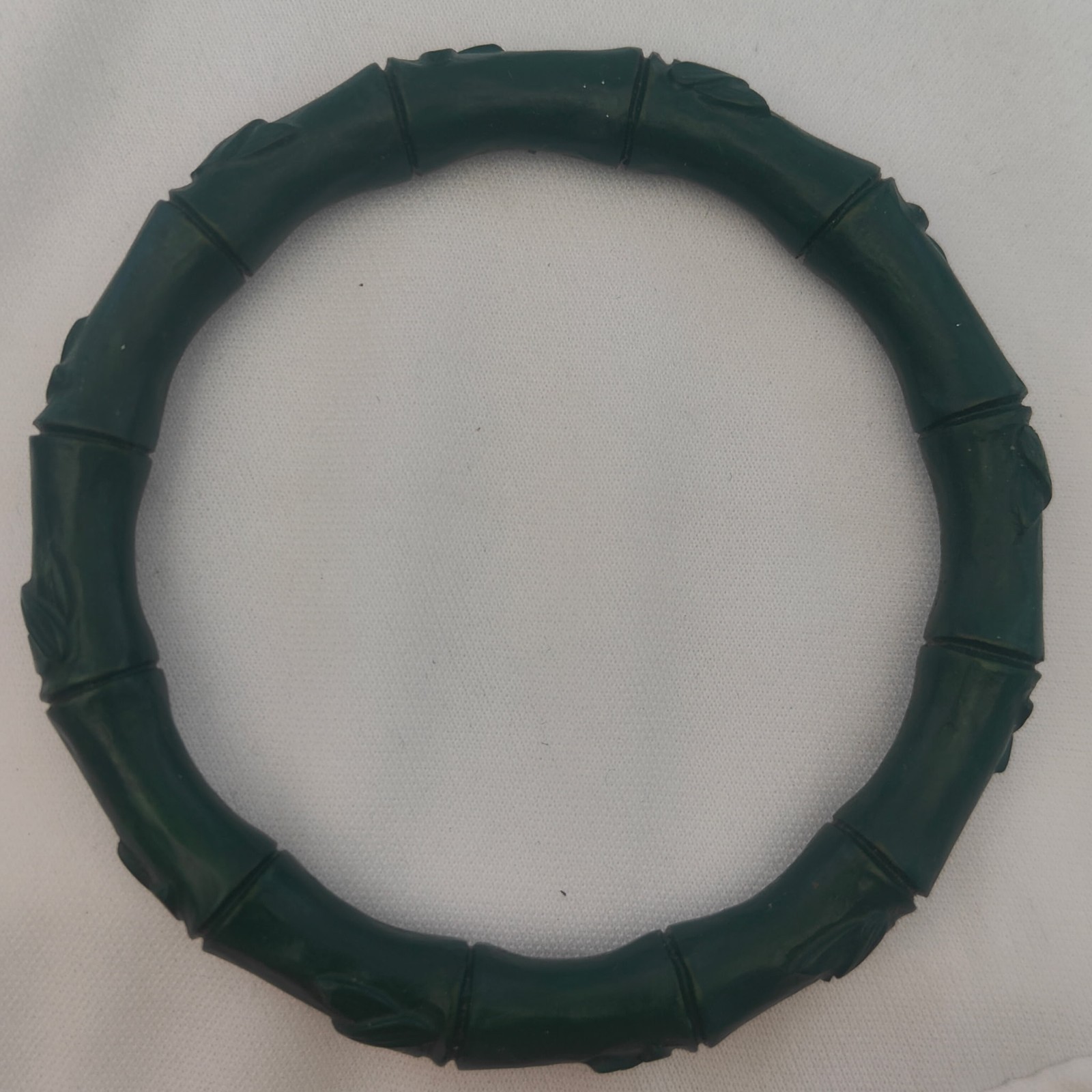 This lot of 7 bangle bracelets includes natural bamboo, wicker with gold tone wire and cinnabar style resin. The vintage-inspired pieces are stackable and adorned with a nature theme, perfect for adding a touch of elegance to any outfit. Made from natural materials, these bracelets are a unique and stylish addition to any jewelry collection.