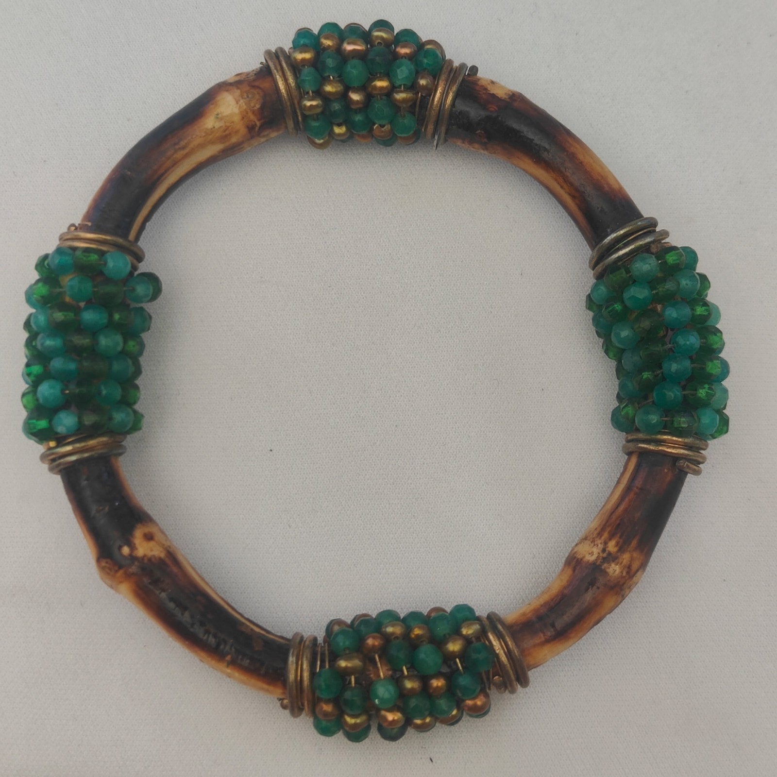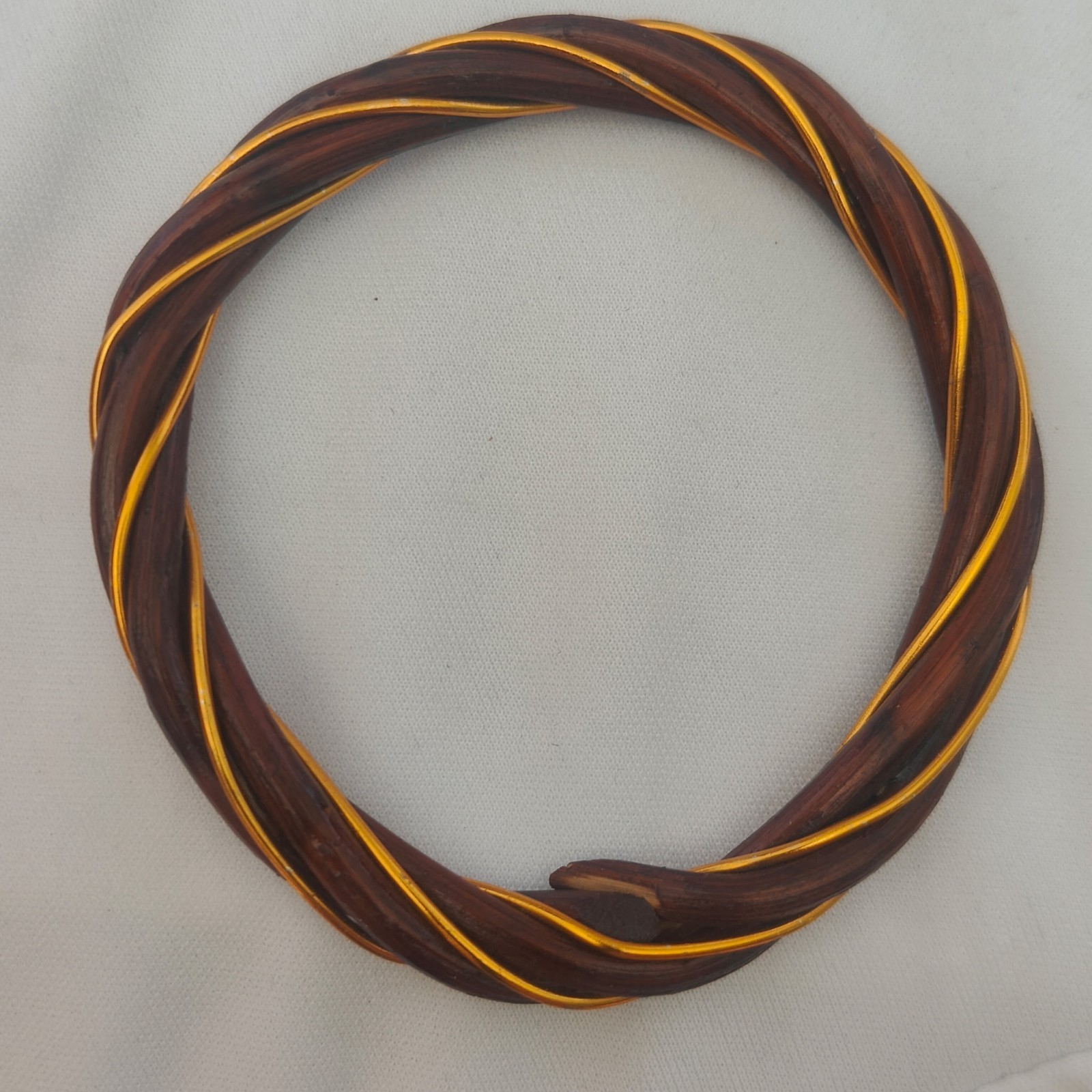 Natural Bamboo, Wicker, Cinnabar Style Resin,Gold Wire Bangle Bracelets Lot Of 7