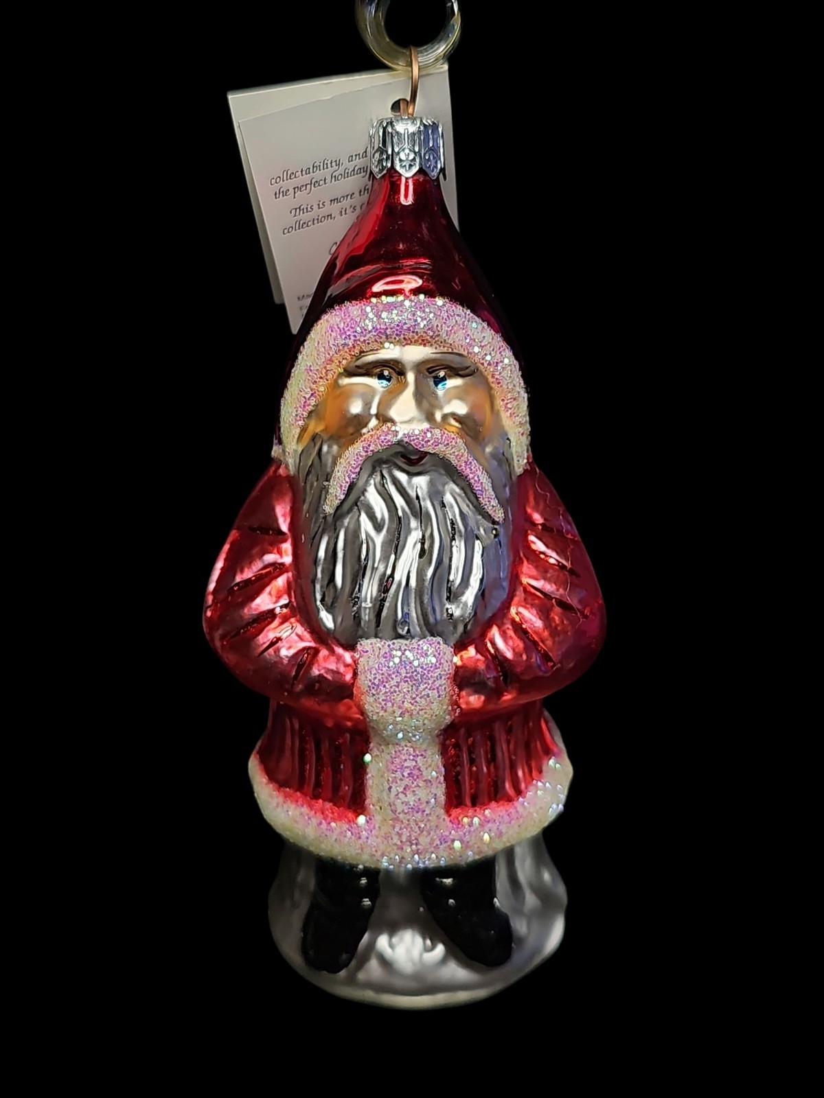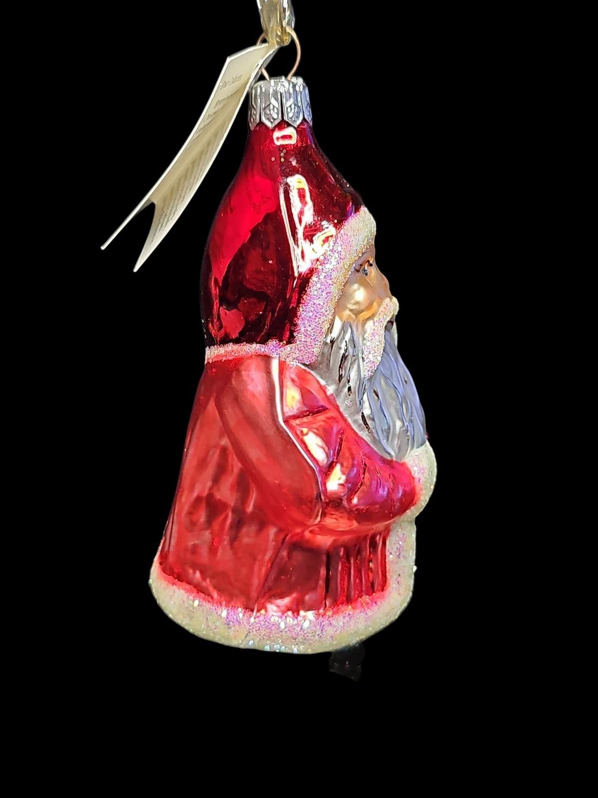 Mouth-blown glass ornament featuring classic Santa Claus.