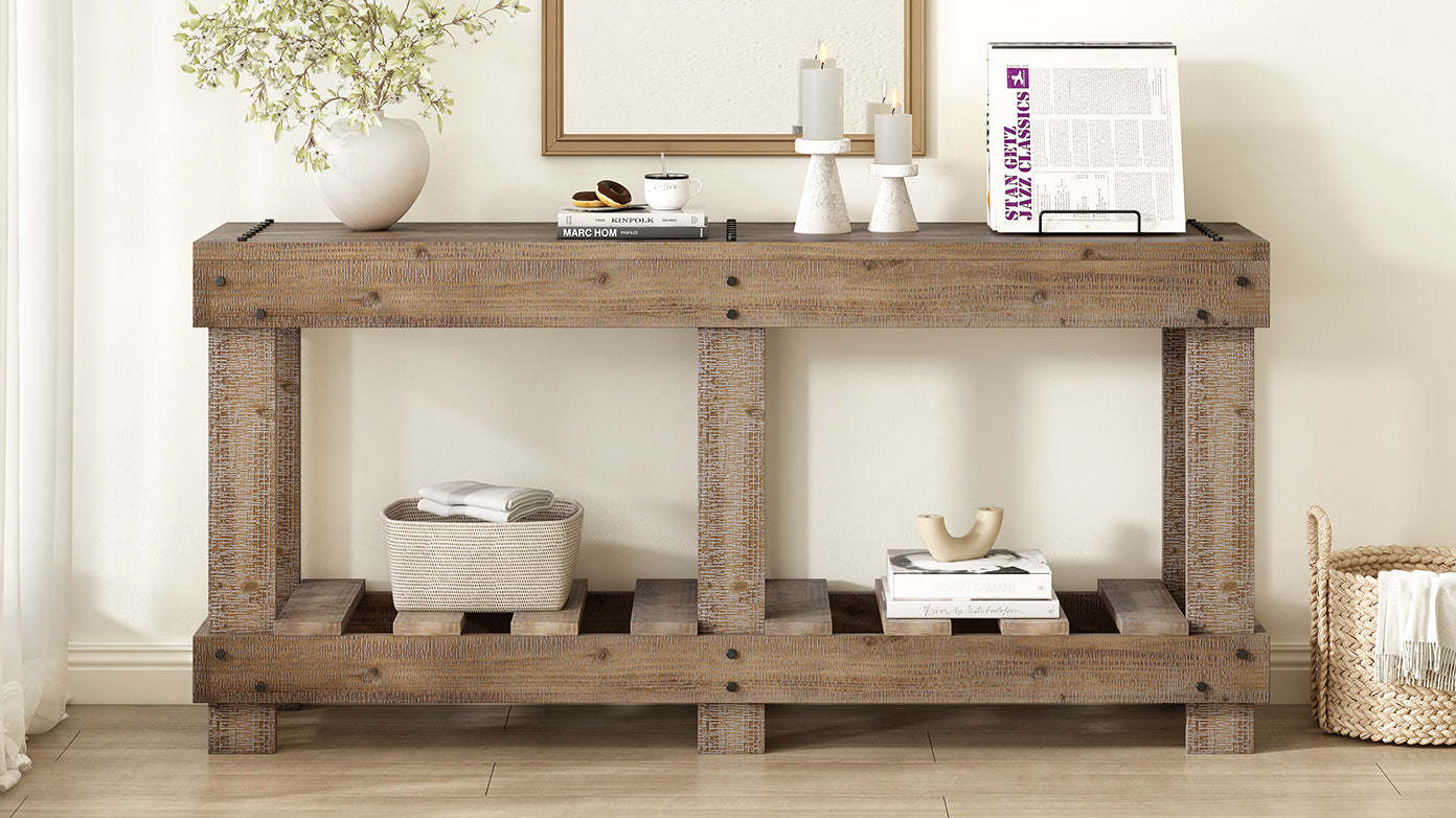 U_Style 62.9' Vintage Fir Wood Entryway Console Table - Hallway & Living Room