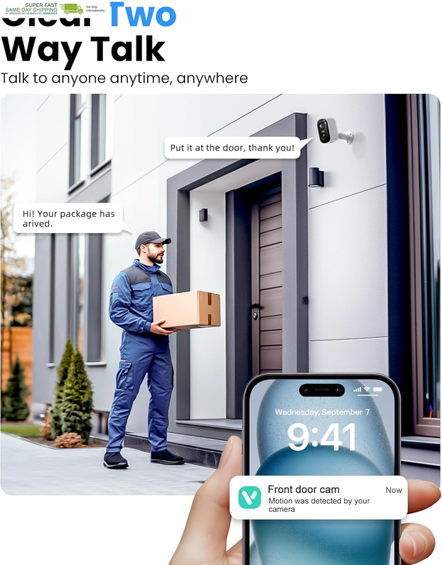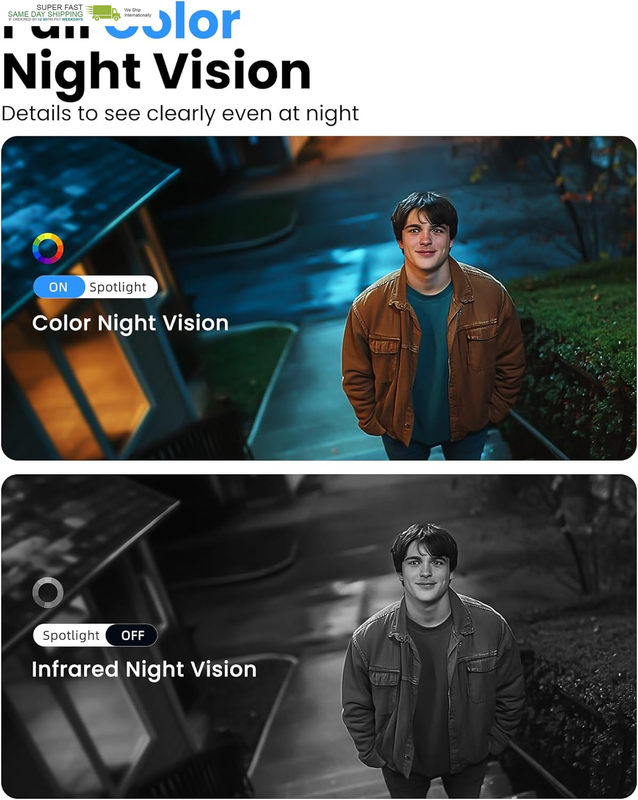Home Security with AI Motion Detection, Color Night Vision, Siren Alarm, 2-Way T