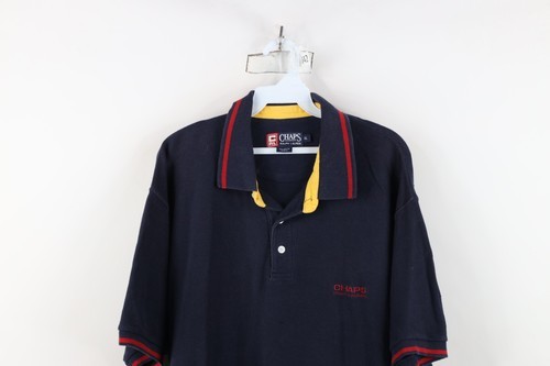 Vintage 90s Chaps Ralph Lauren Mens XL Distressed Spell Out Baggy Fit Polo Blue