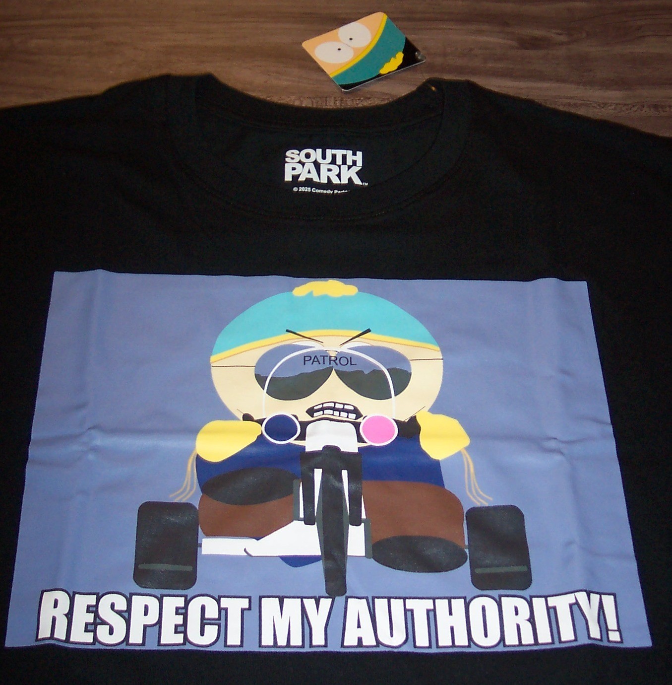 This is a SOUTH PARK Comedy Central CARTMAN Police Officer "Respect My Authority" T-shirt. It is a size 2XL, and it is NEW with the tag. It is 25 inches from armpit to armpit and 31 1/2 inches in length. Combine auctions to save on shipping. AD