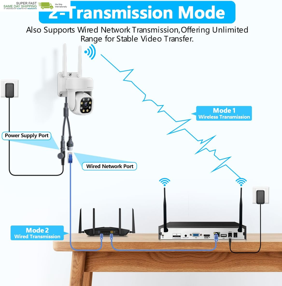 PTZ Control, Auto Tracking, Two-Way Audio, Dual Antenna Enhance