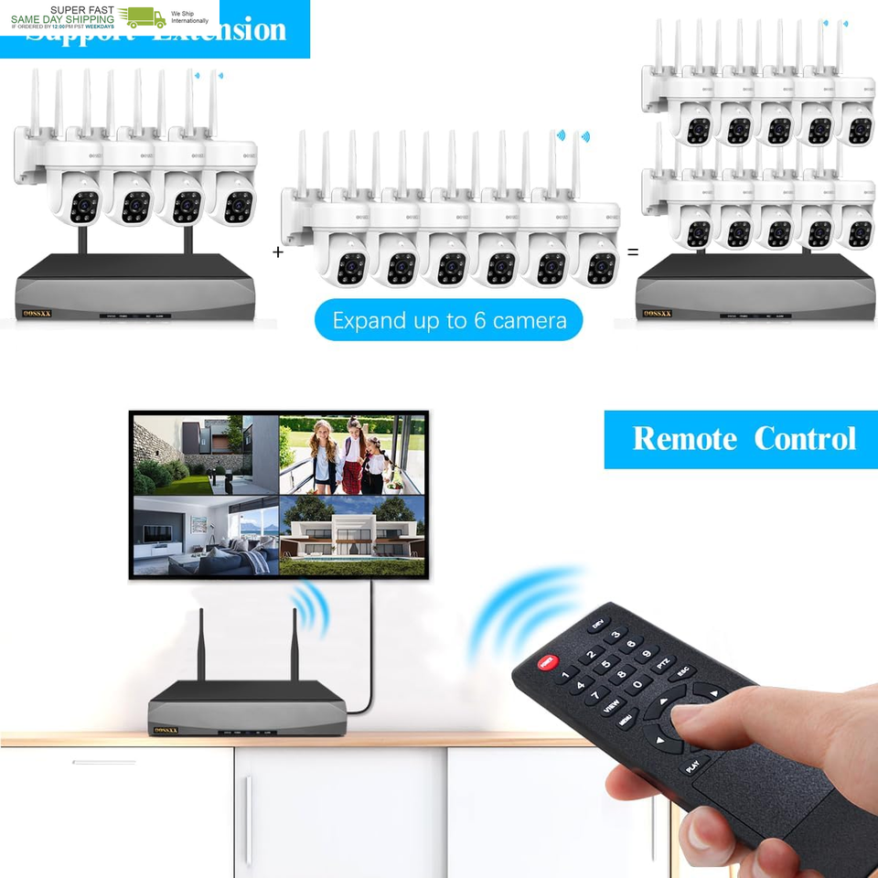{10-Channel System Crystal-clear Night Vision} The 10 Channel Dual WiFi 4K Network Video Recorder supports up to 10 cameras, and it comes with 4Pcs 5MP IP66 Waterproof Two-Way Audio Security Cameras.You also can add 6 more wireless cameras for home security, Supported connect with solar, battery, PTZ cameras. With 8 Infra-Red LEDs in each camera, the security cameras wireless outdoor are able to see up to 80ft in darkness, providing you with crystal-clear night vision support.