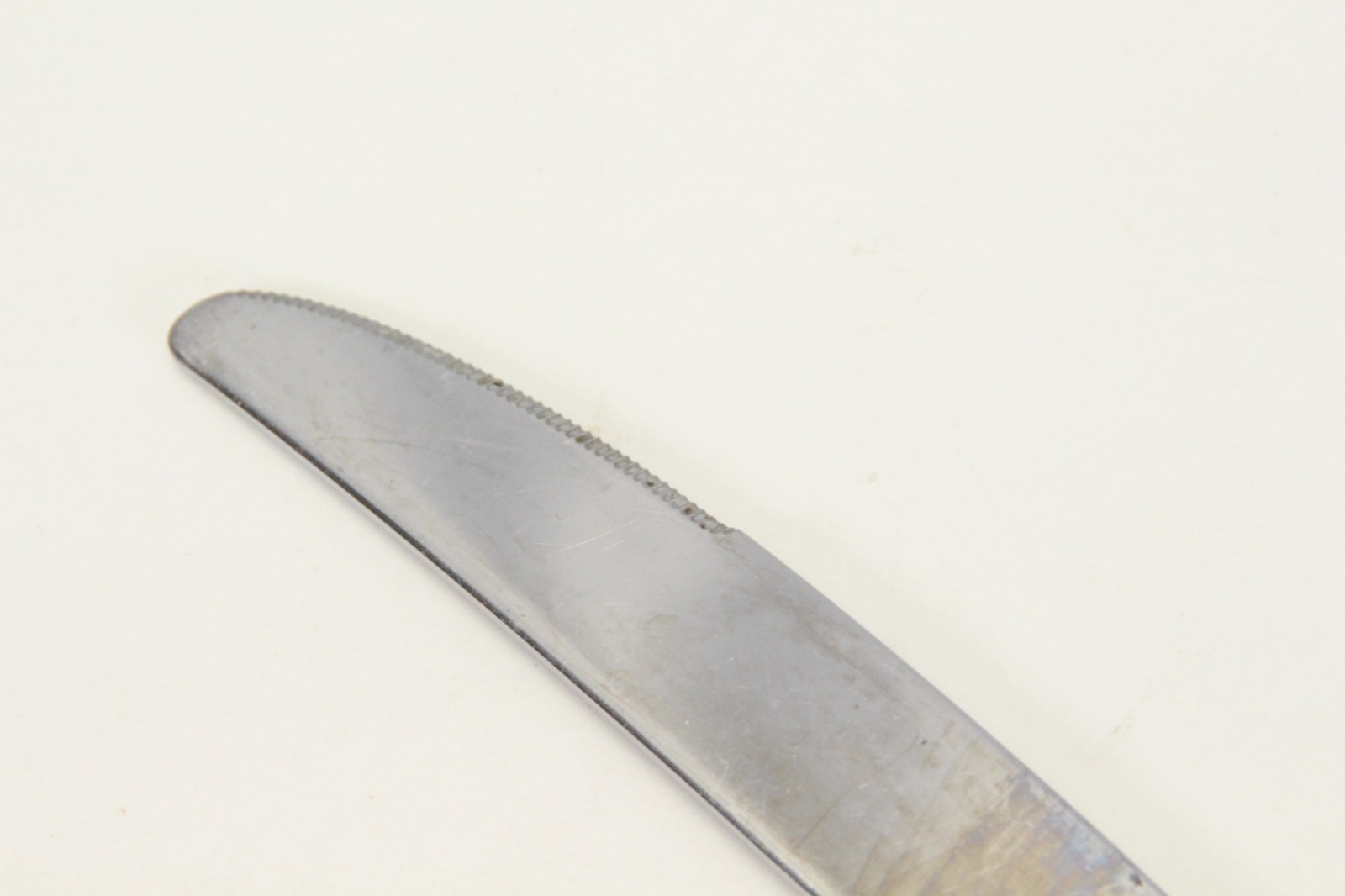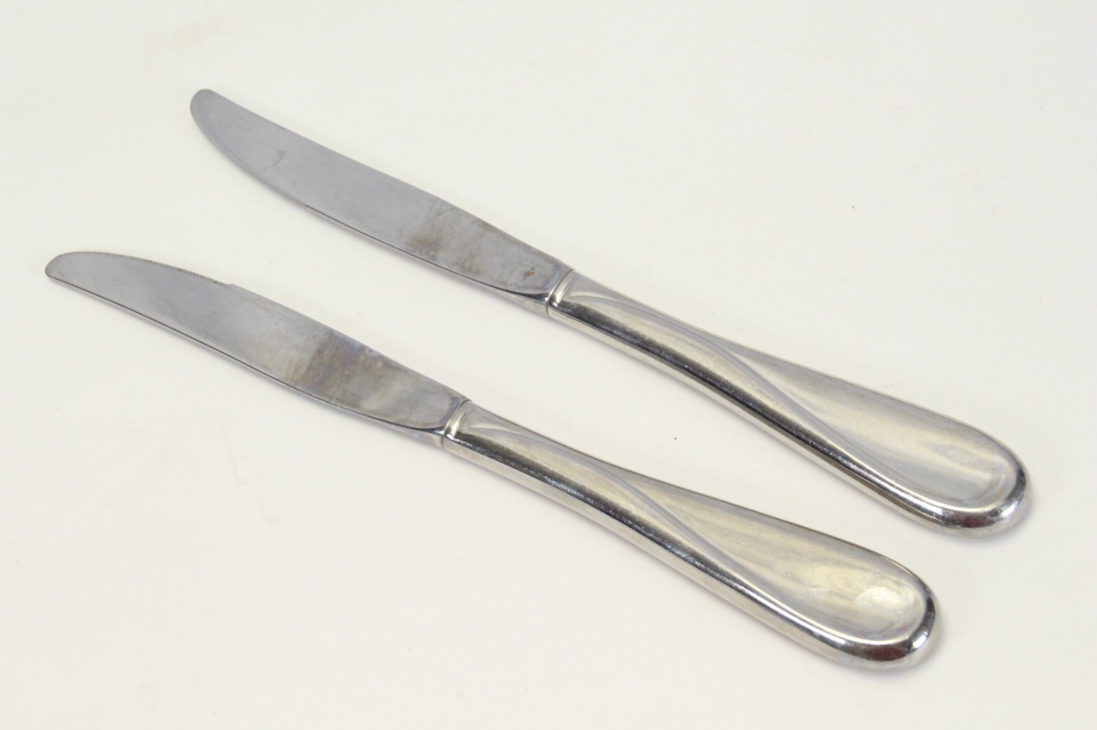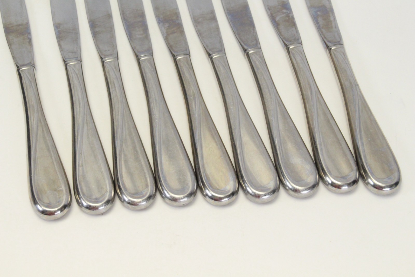 The knives showed some wear. I have had similar knives for 60 years that don't show any wear, however my knives came apart so they were unusable so a little wear is not a big deal.