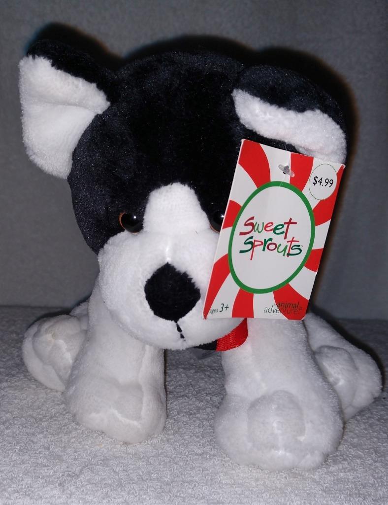 Sweet Sprouts BLACK & WHITE PUPPY with Red Bow 8" Plush New