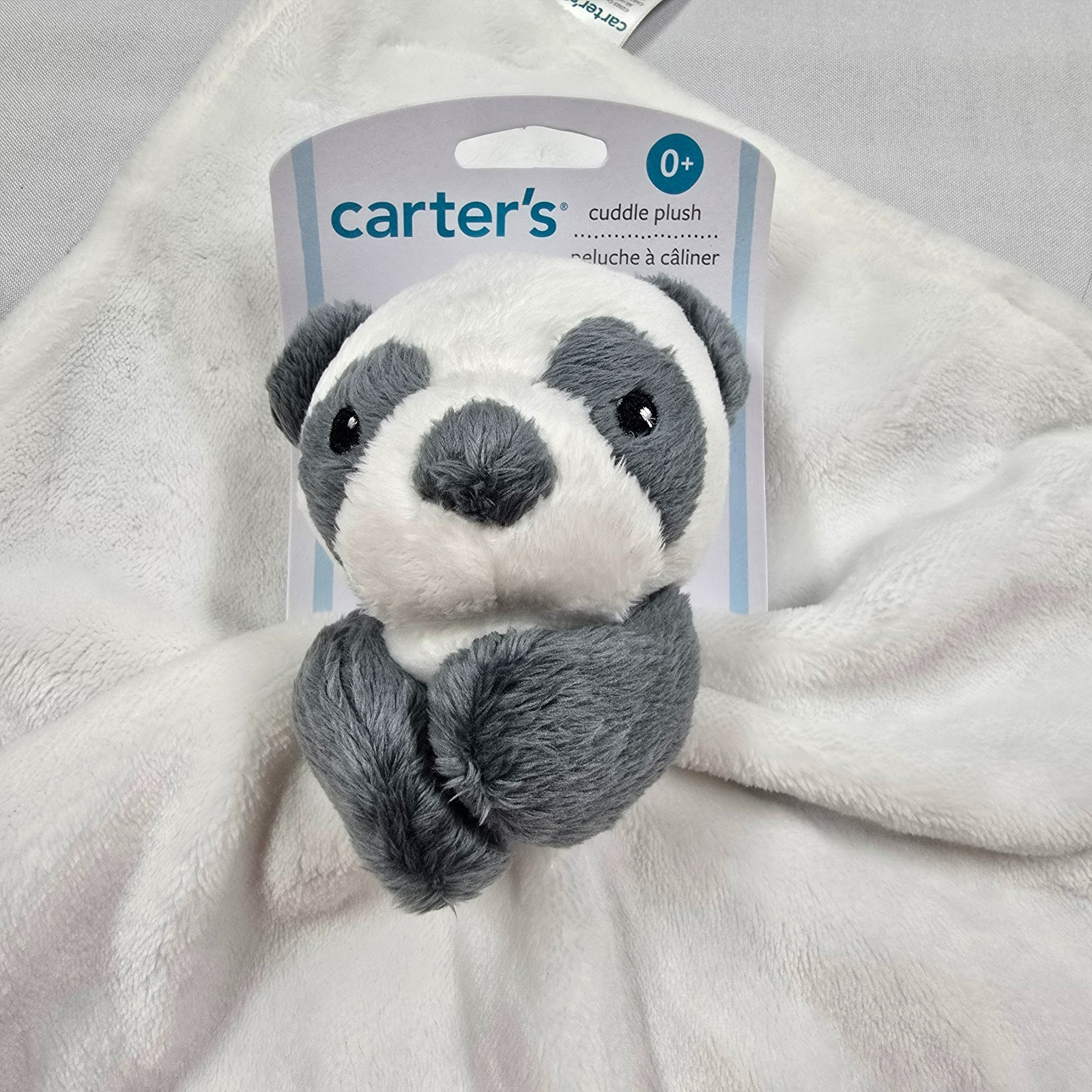 CARTERS Security Blanket PANDA White Dark Gray Cuddle Furry Grey Back Soft NWT