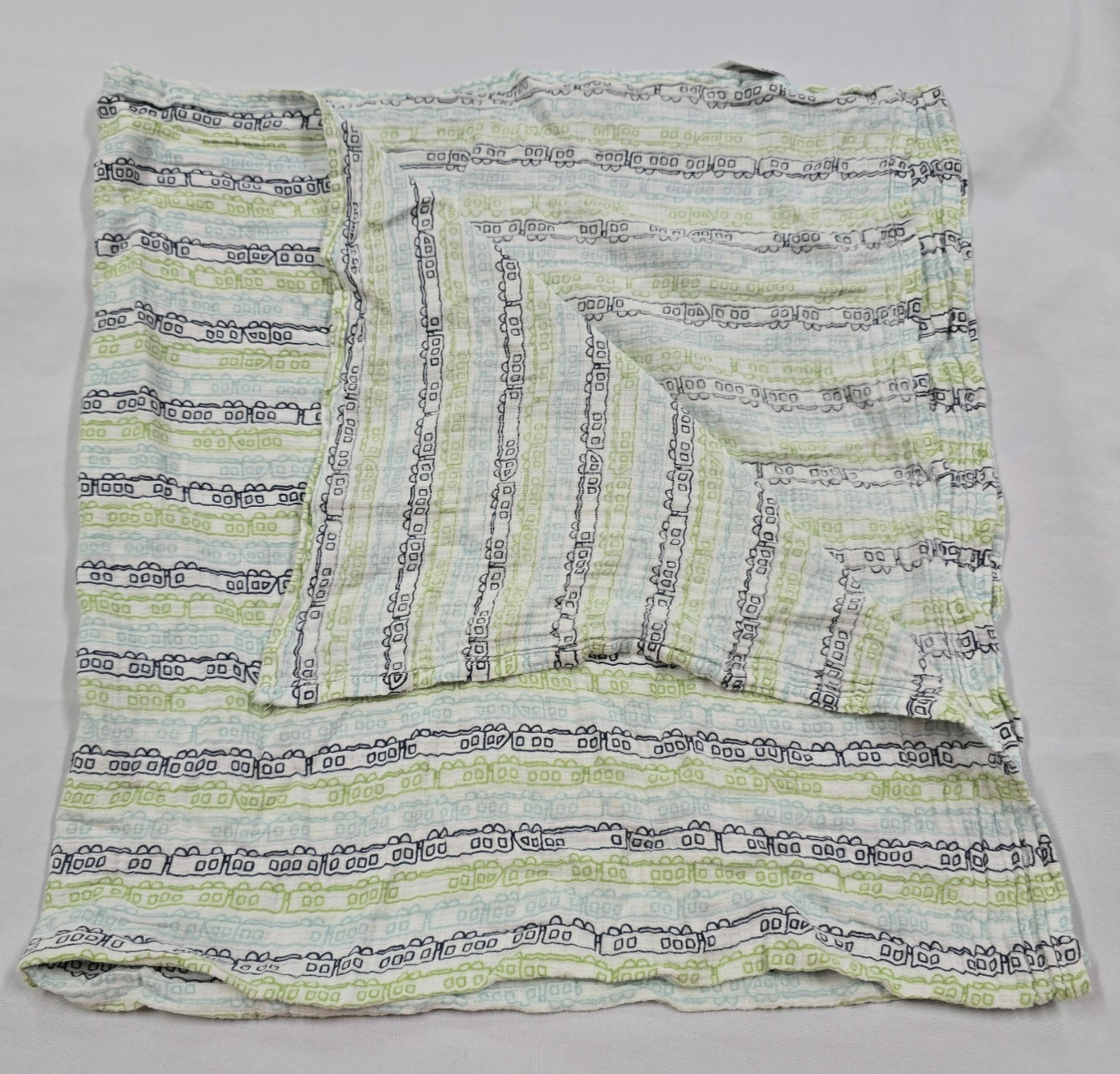 Aden + Anais Trains Baby Blanket Swaddle Muslin Blue White Green Boys Cotton