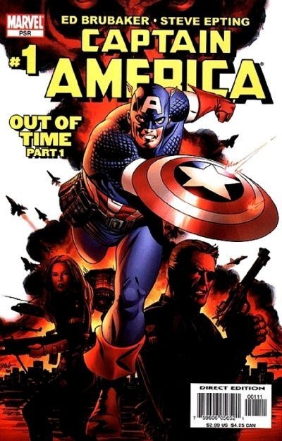 *1st cameo app. of Winter Soldier. Winter Soldier: Part 1.1 - Out of Time: Part 1 of 6 - Written by ED BRUBAKER Art Cover by STEVE EPTING./ It's a new beginning as four-time Eisner-nominated Best Writer Ed Brubaker makes his Marvel debut, joined by white-hot artist Steve Epting! As the new regular creative team, they will take Cap's life in directions fans will never see coming! In just this first issue, the Red Skull lays the groundwork for his most devastating attack ever on Captain America and the land he holds dear...and with the Cosmic Cube in his possession, how can Cap hope to stop him? Find out in the shocking twist-ending that will have everybody in the industry talking! NOTE: First partial/Cameo appearance of Winter Soldier.
