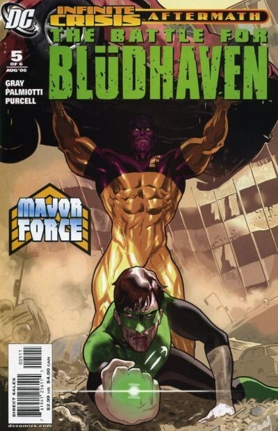 *Written by Jimmy Palmiotti Justin Gray. Art by Dan Jurgens Palmiotti. Cover by Daniel Acuรฑa. The after-effects of INFINITE CRISIS begin to impact the DCU starting in CRISIS AFTERMATH: THE BATTLE FOR BLรDHAVEN. The mystery within Blรผdhaven deepens when a door-to-door search uncovers the body of a comatose hero, things suddenly become more complicated. And trouble begins when Major Force arrives, and the secret behind the government's chilling new SHADE agency is uncovered!
