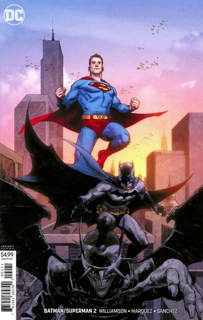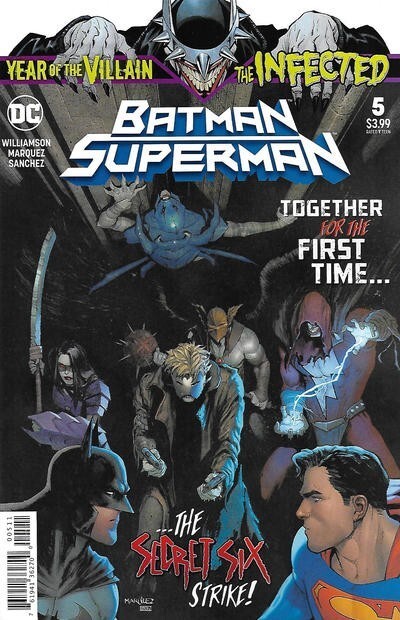 *Written by Joshua Williamson. Art by David Marquez./ Up in the sky, in the dark of the night, trust no one-for the Secret Six walk among us. Spinning out of the devastating events of the Batman Who Laughs, Superman and Batman are together once more in an all-new monthly series-and they're facing a terrifying new threat that could strike from anywhere. The Dark Knight and the Man of Steel must journey into the depths of Gotham City to learn which of their fellow heroes has been transformed into the horrifying horseman of their most dangerous and deranged foe ever. Our heroes will need to fight to survive, but an even more dangerous question lurks in the shadows: Can Superman and Batman even trust each other?