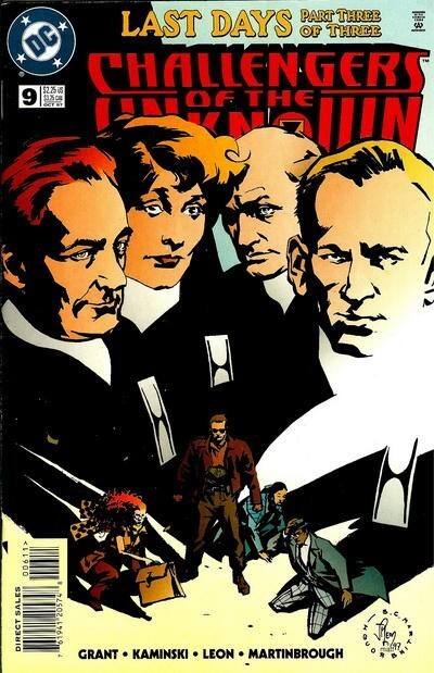 *Cover pencils by John Paul Leon, inks by Shawn Martinbrough. Script by Steven Grant and Len Kaminski, pencils by John Paul Leon, inks by Shawn Martinbrough./ The Challengers are called to Harvest, Wyoming to investigate a string of mysterious disappearances dating back to the 19th century; The locals are hostile, and the Challengers end up in a brawl; A dour man named Saxon contends the unknown should stay unknown. The Challengers appear on Nina Justis's talk show; She's famous as an alien abductee, until the Challs show photos of her "abducted" in Aruba, vacationing; Nina vows to get even... Meanwhile, in a unnamed city, drug addicts are dying like flies - then awakening in hospitals and swarming over people. The Challengers are called in, though city officials think they're "glory hounds"; They investigate corpses and find no drugs. Then corpses animate and attack.