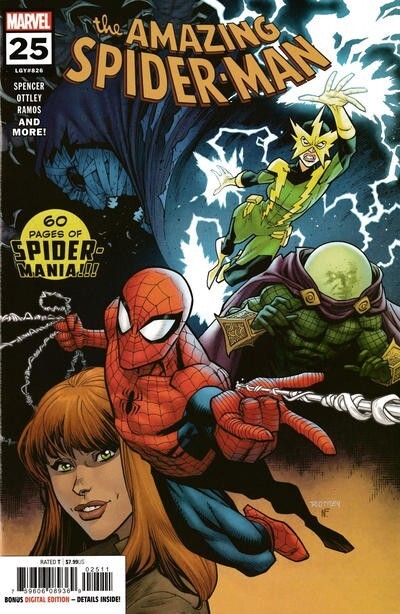 *Year two of Nick Spencer, Ryan Ottley and Humberto Ramos' run on ASM begins here! In the giant-sized main story, Spider-Man and Mary Jane find themselves in an INCREDIBLY tough situation, thanks to Electro. Can Spidey save MJ? CAN MJ SAVE SPIDEY? What is Mysterio cooking, and what does it have to do with the bandaged villain who has been on the periphery since #1?! All this, plus a story by Dan Hipp (TEEN TITANS GO! Art Director), internet sensation Keaton Patti and MORE!
