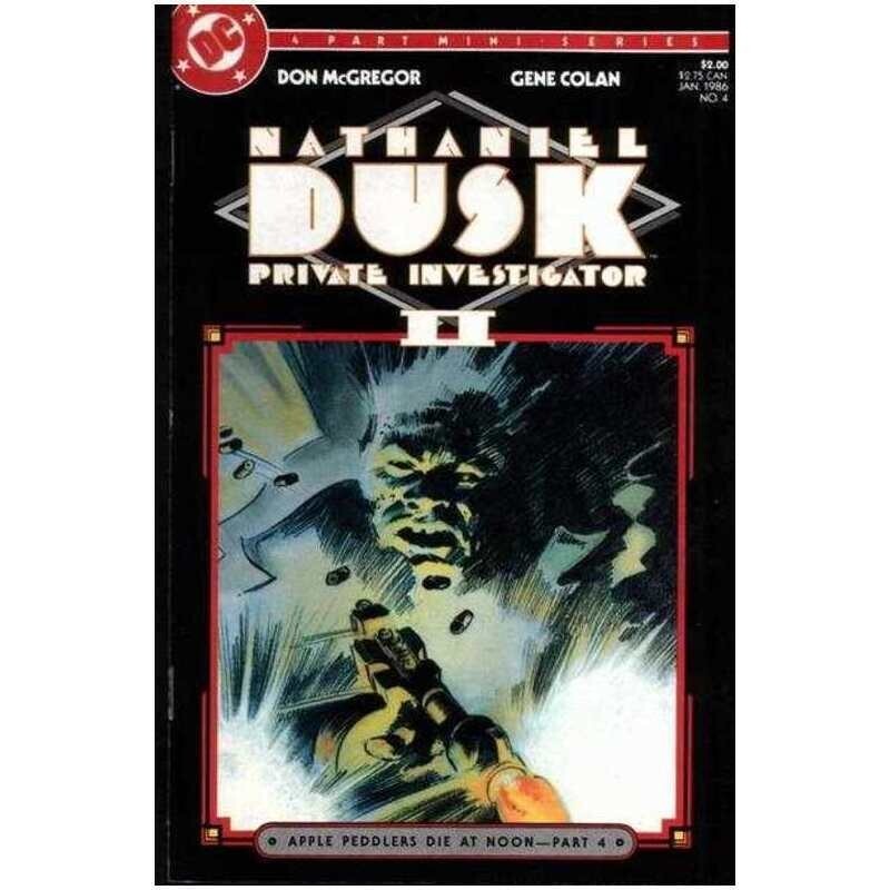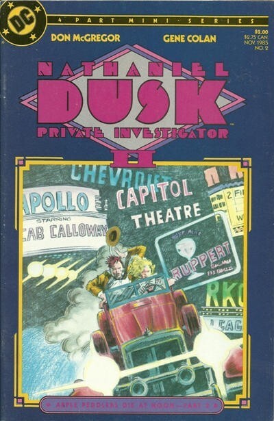 *Summer, 1934. A hard-boiled private investigator. A guy who casts a lone shadow. It could only be...Nathaniel Dusk! There's only one way to get him off this case - kill him! In this exciting new series, each issue has 48 pages, featuring spectacular art created from pencils only, and full-process color. Each crisp page is based on actual events of the 1930's. Don McGregor wrote this incredible series and Gene Colan did the unique art.