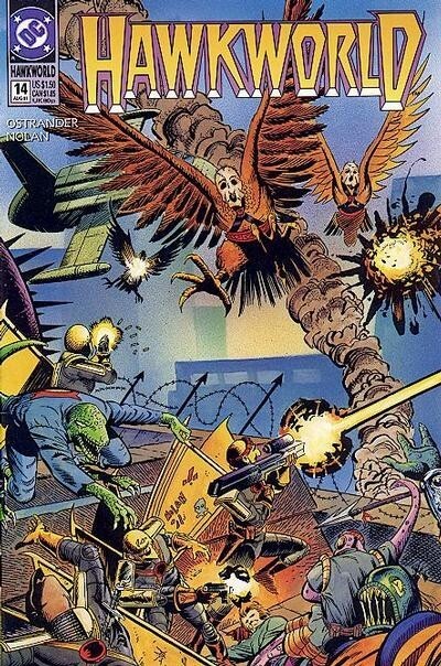 *In the HAWKWORLD Prestige Format mini-series (see Hawkworld (1989 Limited Series), the tale of Thanagarian policeman Katar Hol was begun...and now his adventures continue in the HAWKWORLD ongoing series. The evil Byth has fled Thanagar for Earth, with Hawkman and Hawkwoman hot on his trail. On Earth, Katar and Shayera link up with the Thanagarian ambassador and begin to lay down roots for high-flying adventure set on Earth and Thanagar and all points in between. Written by Timothy Truman and John Ostrander, with art and cover by Graham Nolan.