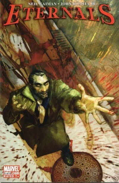 *Written by NEIL GAIMAN. Penciled by JOHN ROMITA JR. Cardstock Cover by RICK BERRY./ All the mysteries are answered, as Neil Gaiman (1602, Anansi Boys, Sandman) and John Romita Jr. (AMAZING SPIDER-MEN, WOLVERINE) bring you the penultimate chapter of ETERNALS. The remaining Eternals have to fight for their existence and the nature of the cosmos is explained.