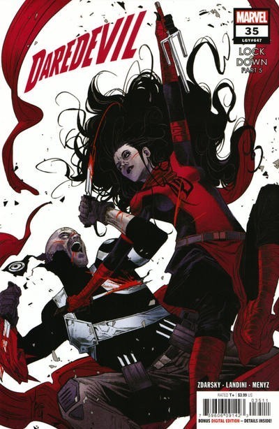 **Lockdown: Part 3 5 of 6 - Written by Chip Zdarsky. Art and Cover by Marco Checchetto./ 'LOCKDOWN' CONTINUES! Elektra faces her greatest challenge as DAREDEVIL yet, as a serial killer is on the loose in Manhattan and killing innocent people. But even the deadliest assassin in the Marvel Universe is at somewhat of a loss, because this killer can be in more than one place at one time. A team? A mutant? Or something else entirely? Whoever or whatever they are, they have a thirst for blood, and Elektra will put herself directly in their sights! PLUS: Matt Murdock faces challenges of his own in prison after being exposed to a dangerous and experimental compound called RE-CID that makes those subjected to it more aggressive and violent. Whatever happens, one thing is certain - Daredevil isn't getting time off for good behavior?