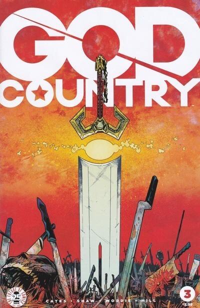 *Written by Donny Cates. Art by Geoff Shaw and Jason Wordie. Cover by Geoff Shaw and Dave Stewart. SERIES PREMIERE Emmet Quinlan, an old widower rattled by dementia, isn't just a problem for his children-his violent outbursts are more than the local cops can handle. When a tornado levels his home-as well as the surrounding West Texas town-a restored Quinlan rises from the wreckage. The enchanted sword at the eye of the storm gives him more than a sound mind and body, however. He's now the only man who can face the otherworldly creatures the sword has drawn down to the Lone Star State...