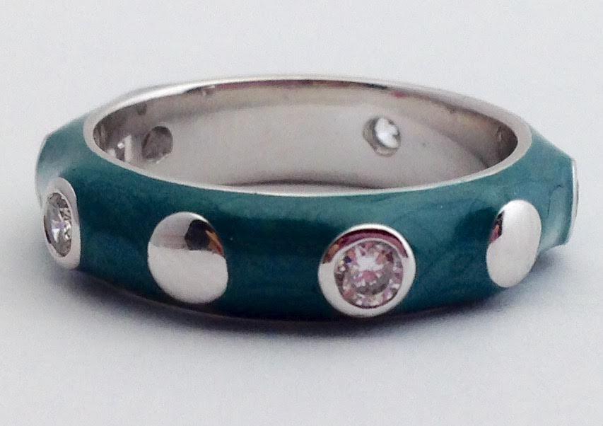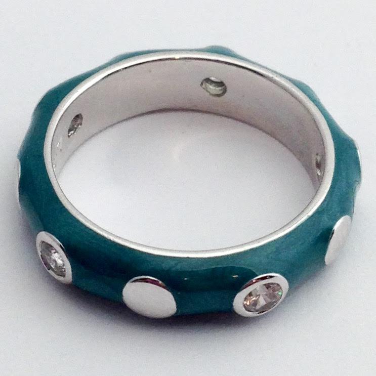 Lauren G Adams Stackable Rhodium Green Enamel Round CSs Ring, R-60509 Sz 7