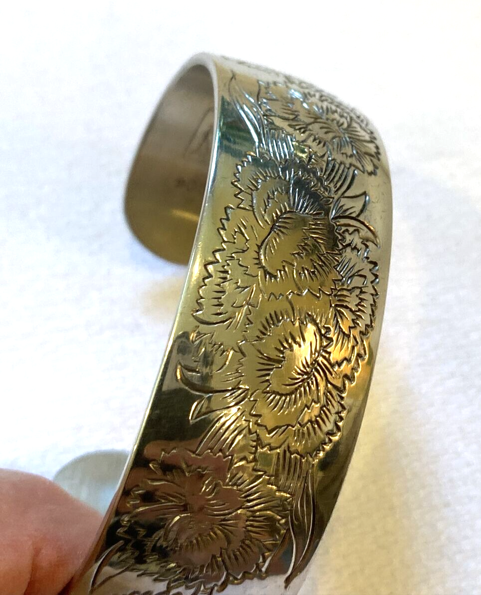 Kirk Stieff Pewter Women's Cuff Bracelet with Engraved Flowers