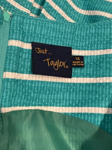Just Taylor Women's Sleeveless Dress Green/White Striped Size 14