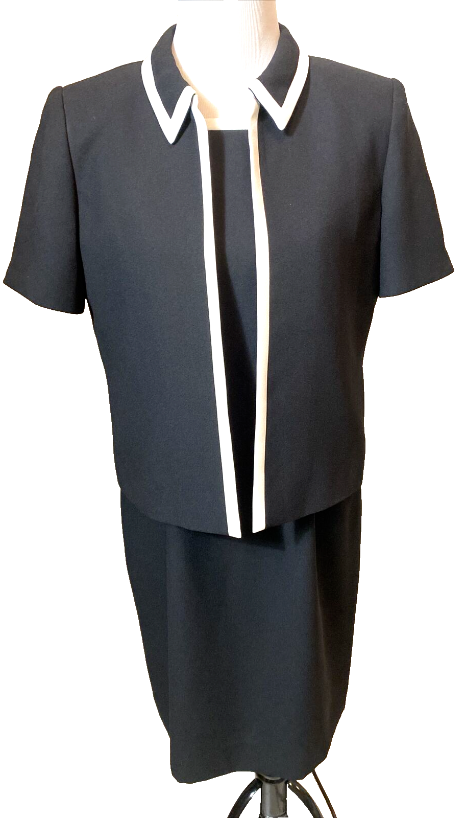 Kasper Women's Sleeveless Dress with Jacket Black/White 10 Petite