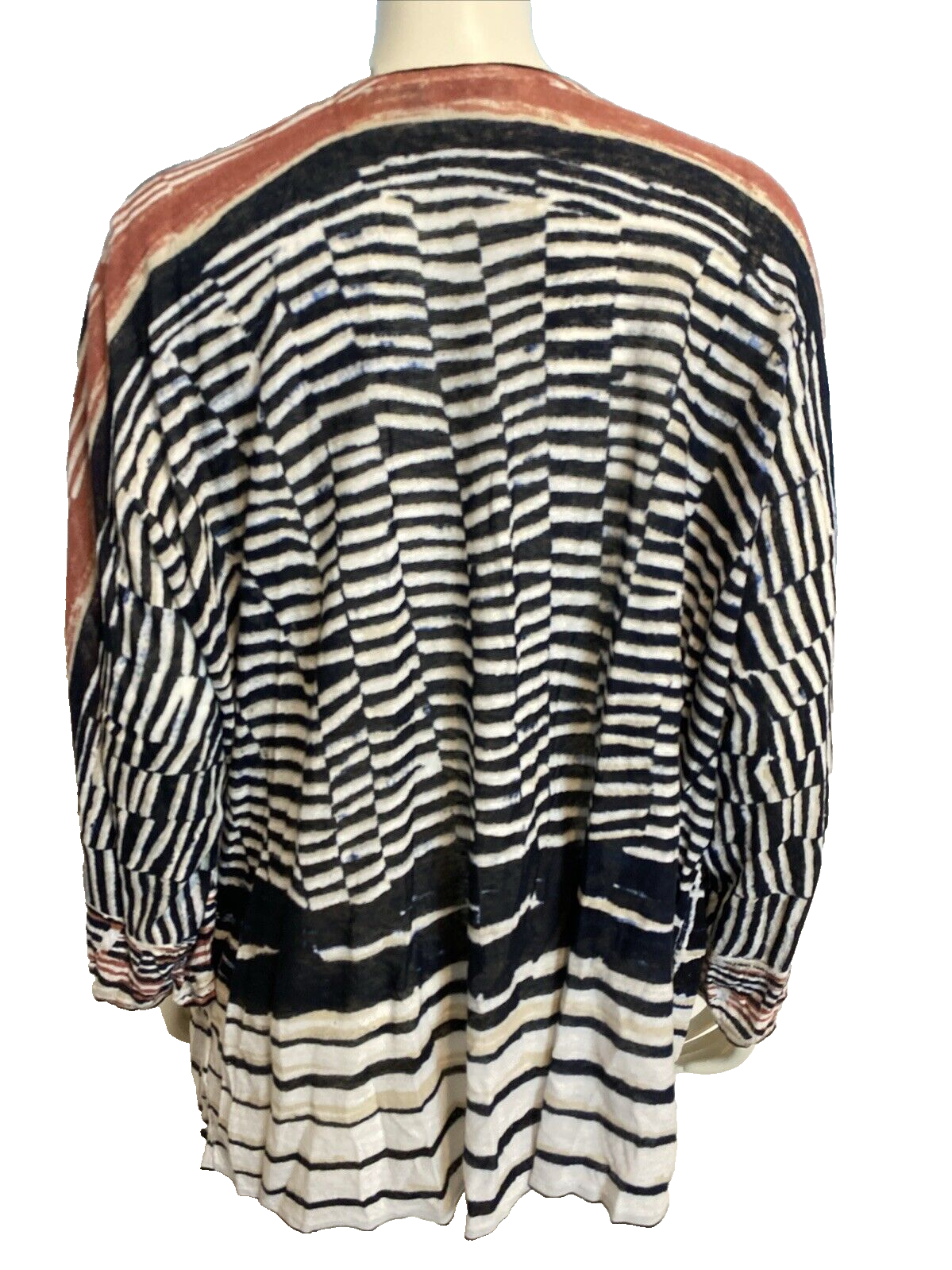 Nic+Zoe Blue, White, Rose Striped Open Cardigan 3/4 Sleeves Linen Blend