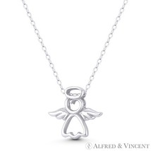 Guardian Angel Outline w/ Wings Halo Charm 15x16mm (0.6x0.6in) Pendant in .925 Sterling Silver