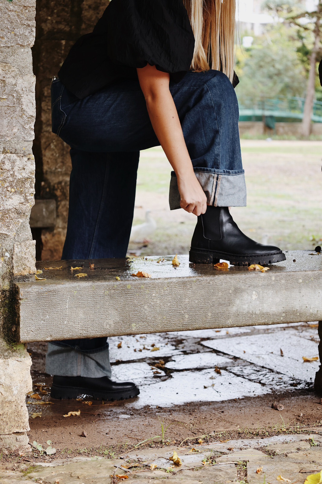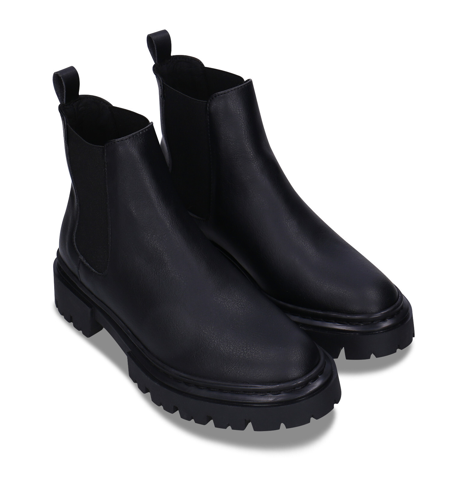 Bottes chelsea pour femmes cheville en cuir végan noir avec semelles striées
