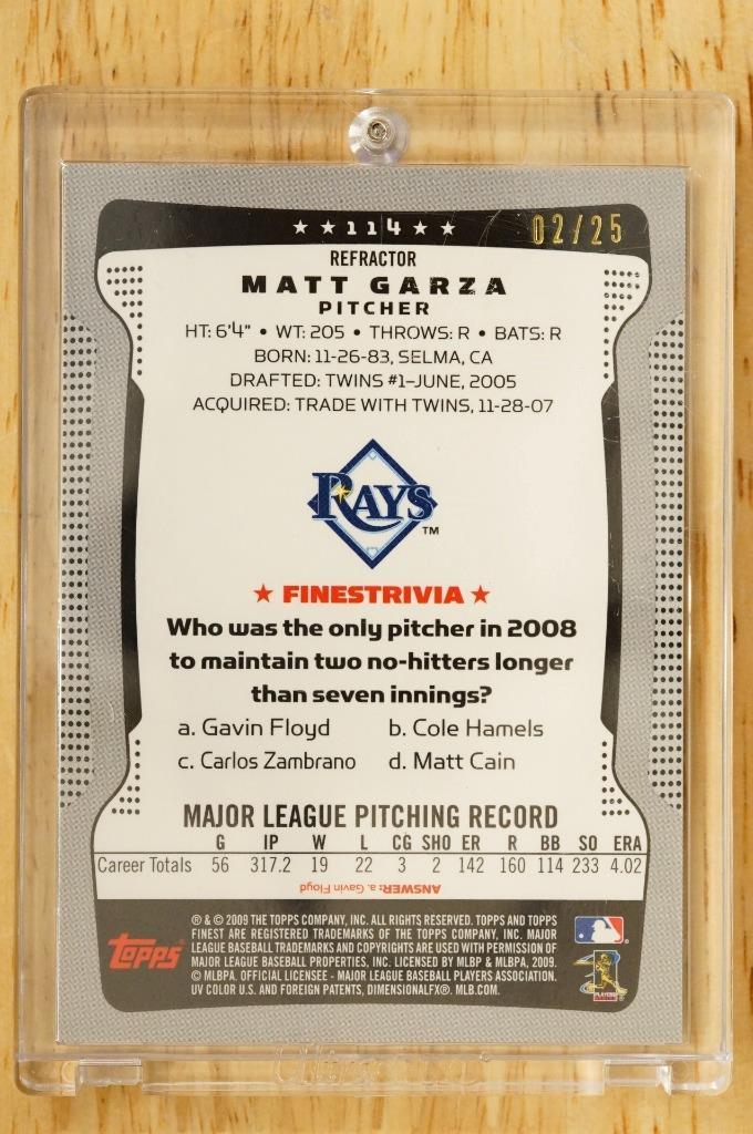 2009 Topps Finest #114 Matt Garza Red Refractor 2/25 Tampa Bay Rays. Raw and ungraded. Smoke and pet free. Present in a one touch.