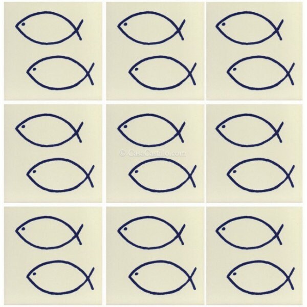 Mexican Talavera Ceramic Tiles Talavera Handcrafted - Fish7 - (you select the s