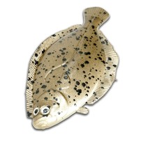 Almost Alive Lures? Flounder is a Striper's Nightmare Come Alive. Stripers eat "Flounder", "Flatfish" or "Fluke" on a regular basis, a tried and true staple in their diet. We designed our Flounder in three sizes and four different colors for varying conditions and environments of bottom water fishing. We like them in combination with our Almost Alive Lures? Weighted Circle Hooks. The circle hooks will cause the Flounder to bump the bottom and a make a small cloud of mud rise which catches the attention of fish. They also help send the bait to the strike zone faster and the circle hooks tend not to injure any larger fish as they most often catch in the corner of the mouth. We also like to use a worm hook (like in a Texas rig) or with a normal jig head (Carolina rig) with the smaller Flounder when using more a more finesse style of fishing. This works like a charm when targeting large Flounder or Redfish on slopes into deeper bodies of water during a falling tide. We designed this bait for Stripers, primarily, but we have discovered that many other game fish will eat a small Flounder so rig it, cast it, drop it, jig it, come tight and get the net!!!