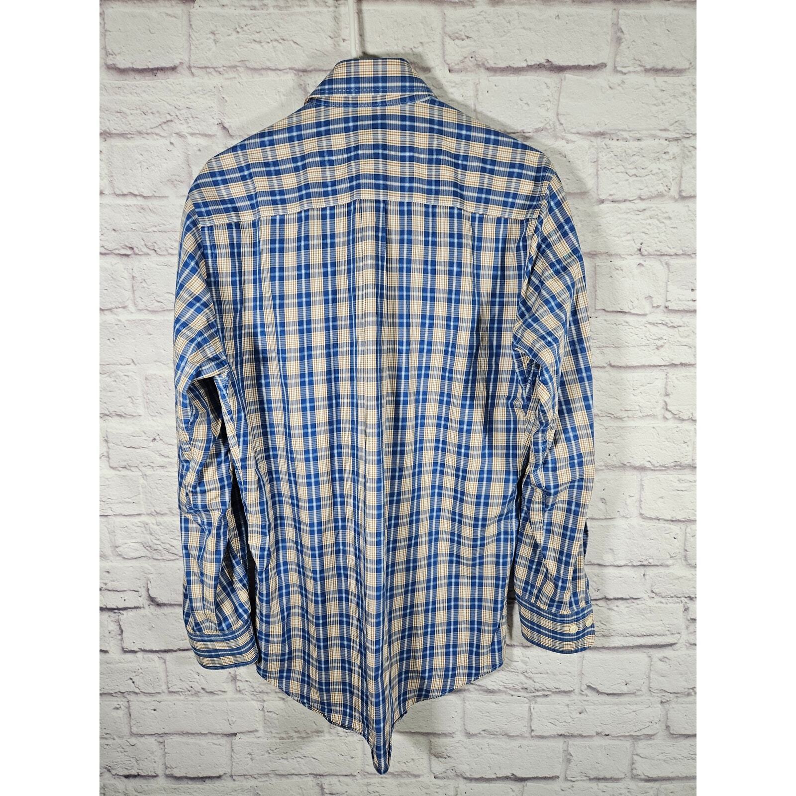 Peter Millar Mens Medium Long Sleeve Plaid Blue Gold 100% Cotton